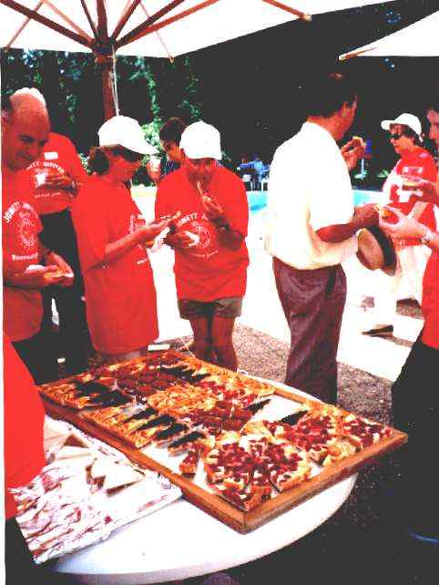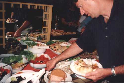 Early arrivals tuck in to the scrumptious food. Later on we had to ask for more - and then again more - food to be produced!