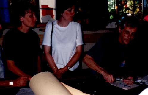 Inside the ch�teau, we admired an amazing collection of the most ornate bridal headdresses you will see anywhere. Tim Wise (blue shirt) ably translated Madame's description of the exhibits.