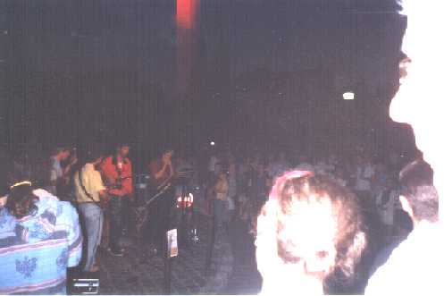 Chartres, Saturday evening for non-race-goers. A water festival in the river Eure. hundreds of swimmers slowly processed from bridge to bridge, each carrying a flame in a random motion. They moved on the water like Brownian motion. Music, as shown here, in various styles was played on the bridges under which the swimmers drifted. Those who wandered into the cathedral were thrilled by an amazing piece of music composed for a choir of hunting horns and the organ. The unique French spiral hunting horns were played by huntsmen in full hunting regalia! Great sound, man...