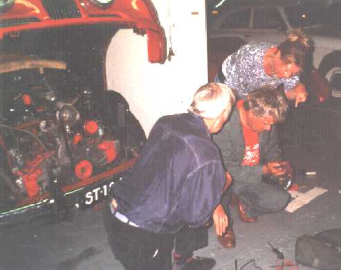 At Caen, where the group spent two nights, there was time for maintenance in the car park beneath our hotels. Here the distributor of the van der Vaart Jupiter is removed for essential work.