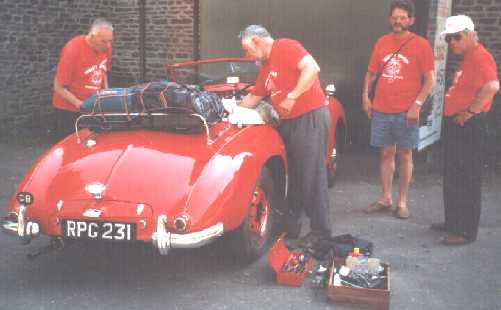 In the evening, the group stumbled on a local classic car rally in the neighbourhood of our Chartres base. None of the participants had even heard of a Jupiter, let alone seen one! One of them had a well -equipped workshop which enabled a broken gear lever to be welded. Heroically, Dennis Sparrow re-fitted it, working until midnight correcting other things he didn't like on this Jupiter.